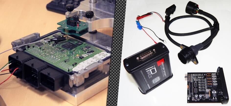 La reprogrammation moteur consiste à modifier directement les données de contrôle moteur programmées dans la mémoire du calculateur, nous utilisons une lecteur venant se connecter sur le port diagnostique OBD ou directement en se connectant sur les pattes de la puce mémoire après avoir délicatement ouvert le calculateur. Pour un moteur essence ou diesel, nous ajustons principalement les temps d'injections et la pression de suralimentation (compresseur ou turbo), d'autres paramètres sont également modifiés pour chaque type moteur.